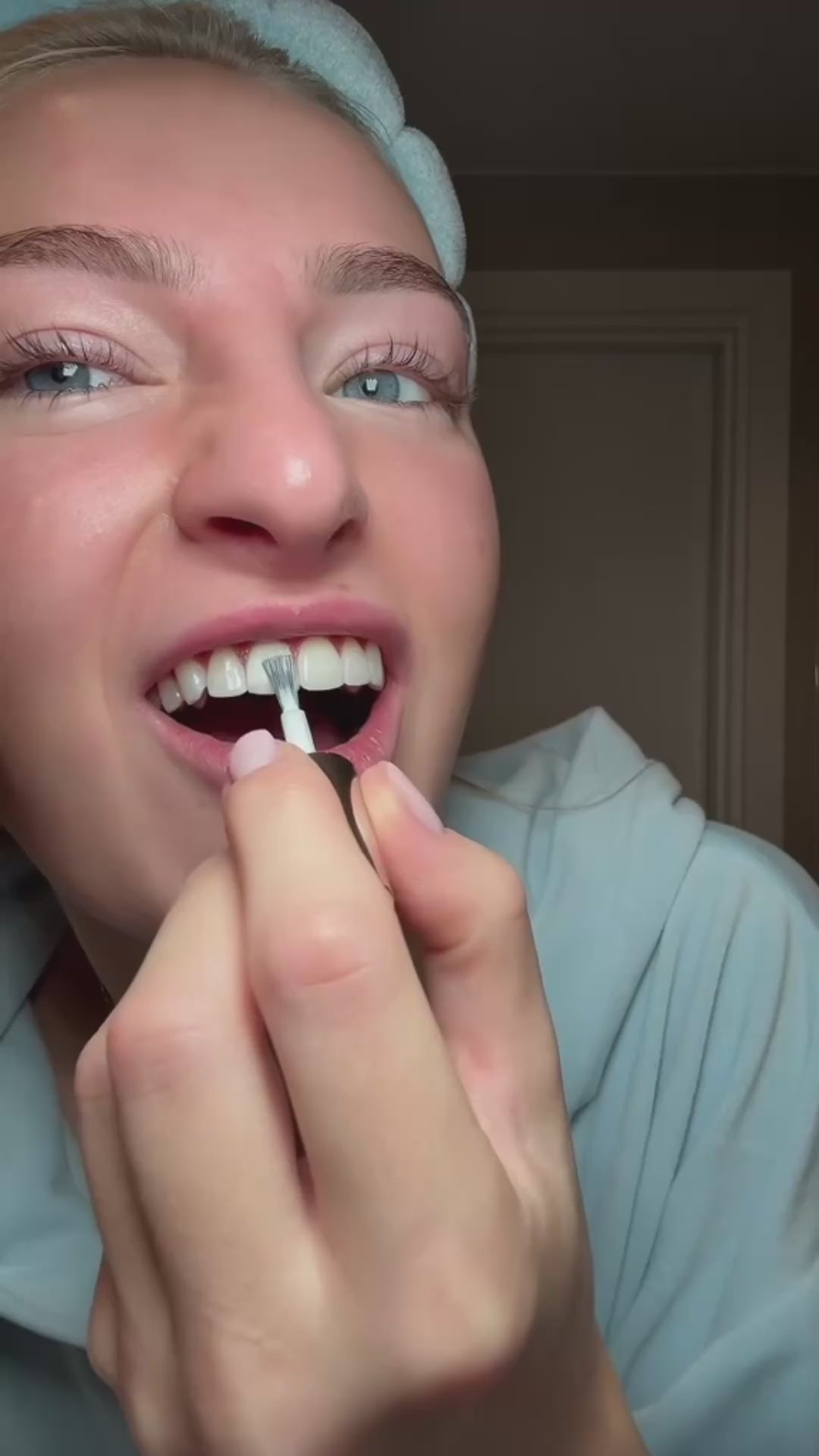 Eine dünne, gleichmäßige Schicht mit dem Applikator auf jeden gewünschten Zahn pinseln – so einfach wie Nagellack.